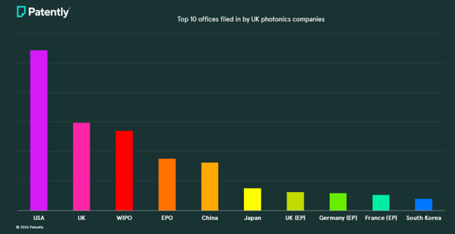 这一点也体现在以英国本土企业所进行的海外专利布局中。除了申请英国国内专利外,英国光子学企业还在全球主要市场对其创新成果进行保护,其中在美国的专利活动尤为活跃。
