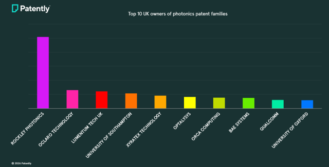 可以明显看出,英国在光子学领域的专业能力得到了广泛认可,近年来多家英国光子学初创企业获得了可观的投资。2026年1月,总部位于利兹的初创公司Optalysys获得了2,300万英镑(约合3,070万美元)的融资,用于推进其在光子计算领域的研究工作。该轮投资中包含英国国家安全战略投资基金(National Security Strategic Investment Fund)的参与。值得注意的是,Optalysys已是英国光子学初创企业中专利组合规模排名第三、全英光子学公司中排名第六的企业。这表明,强有力的专利布局有助于吸引资本投资。