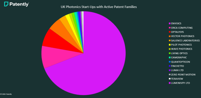 Envisics在英国光子学初创企业中拥有较高比例的活跃专利家族,这或许得益于其近年来成功获得的大规模资金支持。